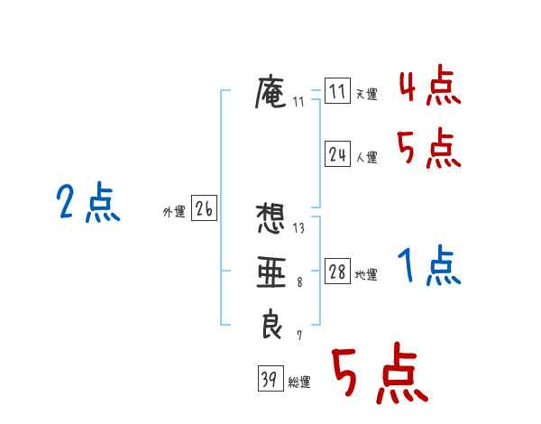 庵想亜良さんの画数の鑑定結果