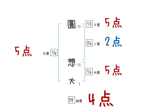 圓想大さんの画数の鑑定結果