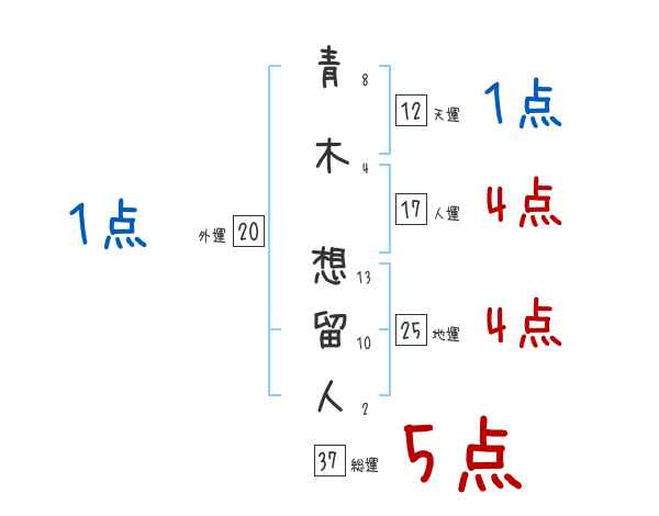 青木想留人さんの画数の鑑定結果
