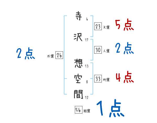 寺沢想空間さんの画数の鑑定結果