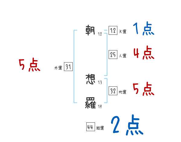 朝想羅さんの画数の鑑定結果