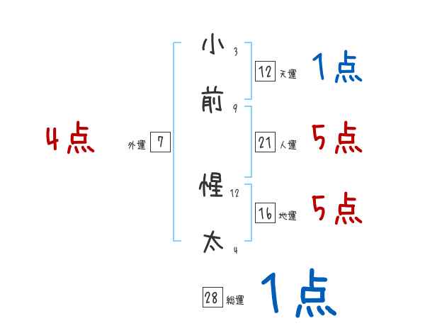 小前惺太さんの画数の鑑定結果