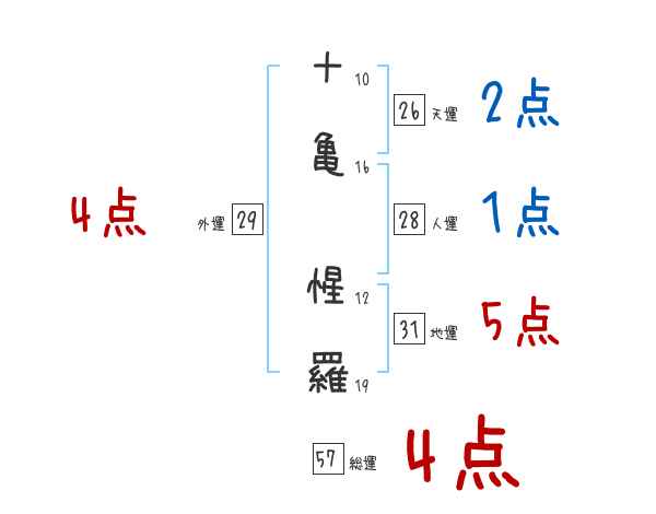 十亀惺羅さんの画数の鑑定結果
