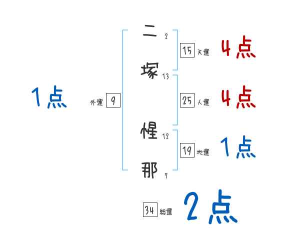 二塚惺那さんの画数の鑑定結果