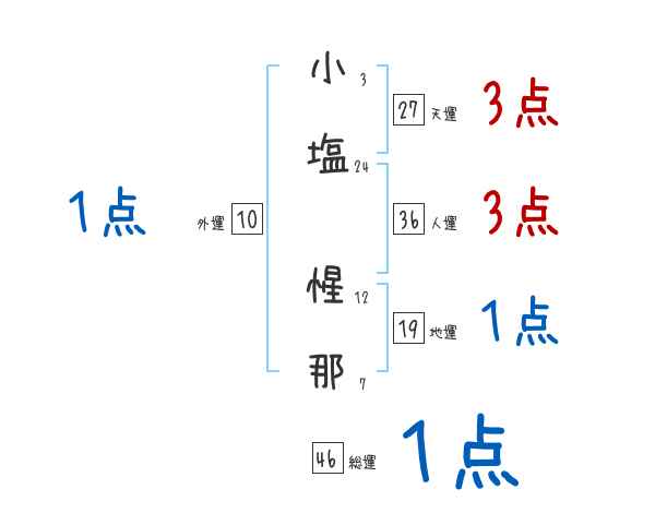 小塩惺那さんの画数の鑑定結果