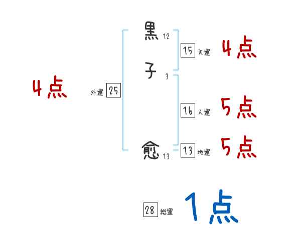 黒子愈さんの画数の鑑定結果