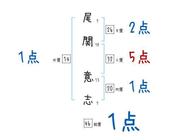 尾関意志さんの画数の鑑定結果