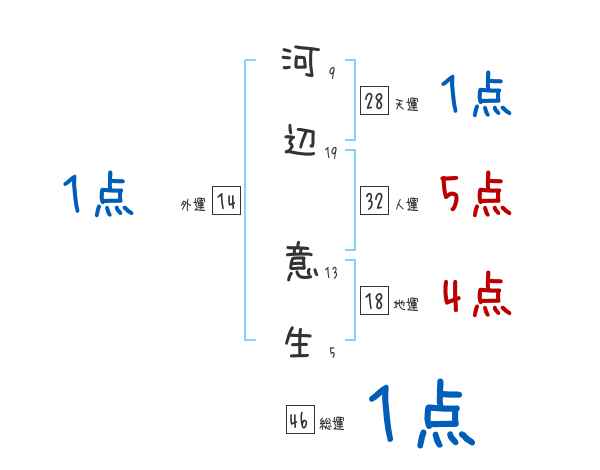 河辺意生さんの画数の鑑定結果