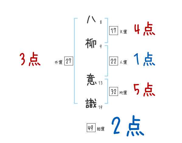 八柳意識さんの画数の鑑定結果