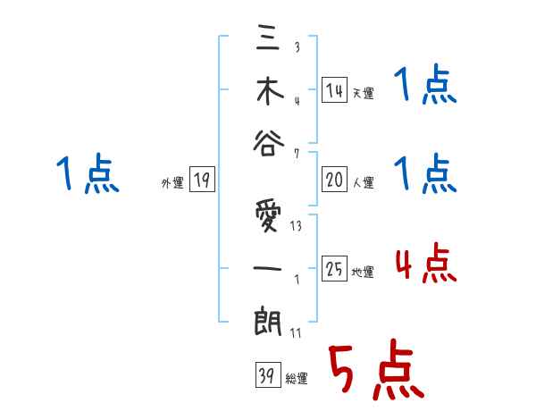 天運![]() | 三木谷愛一朗さんの天運は14画の1つ星!人に対して優しいがストレスを溜め込みがち。人間関係のトラブルを避けるよう気をつけましょう。 家系が持つ宿命的な運勢を表します。祖先から受け継いだ苗字ですので自分の力が及びません。家柄を象徴します。 |