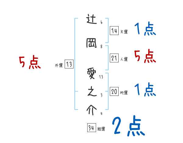 辻岡愛之介さんの画数の鑑定結果