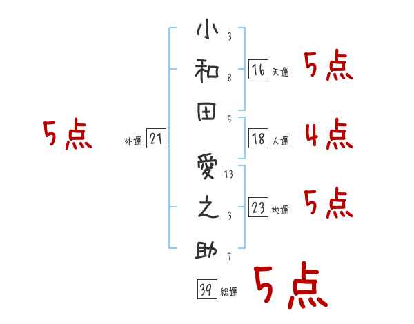 小和田愛之助さんの画数の鑑定結果
