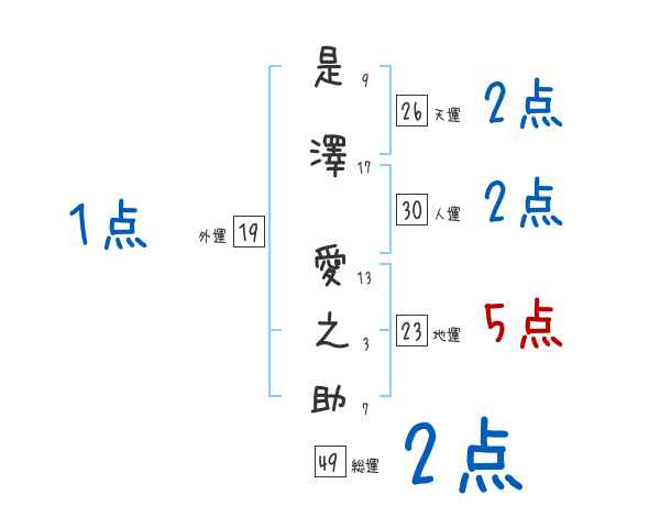 総運![]() | 是澤愛之助さんの総運は49画の2つ星!不安定な性格で明暗がある人生。周りの人には支援されやすい。 あなたの人生を表す1番重要な運勢です。生涯を通じて影響する総合運となり、主に50歳以降の晩年期に影響を及ぼします。 |