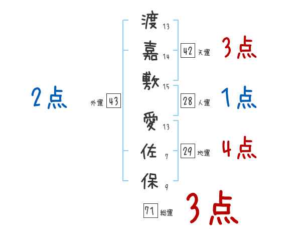 渡嘉敷愛佐保さんの画数の鑑定結果