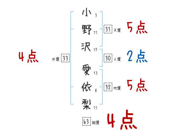 小野沢愛依梨さんの画数の鑑定結果
