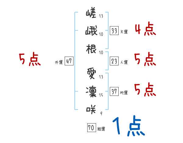 嵯峨根愛凜咲さんの画数の鑑定結果