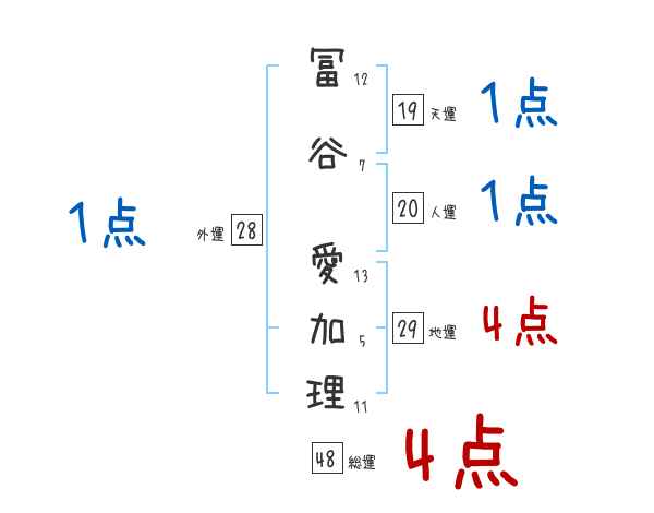 冨谷愛加理さんの画数の鑑定結果