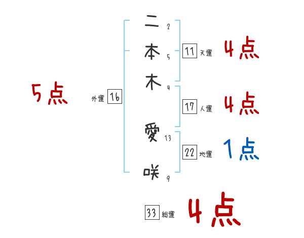 二本木愛咲さんの画数の鑑定結果
