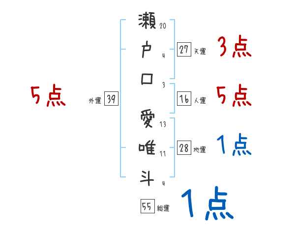 瀬戸口愛唯斗さんの画数の鑑定結果