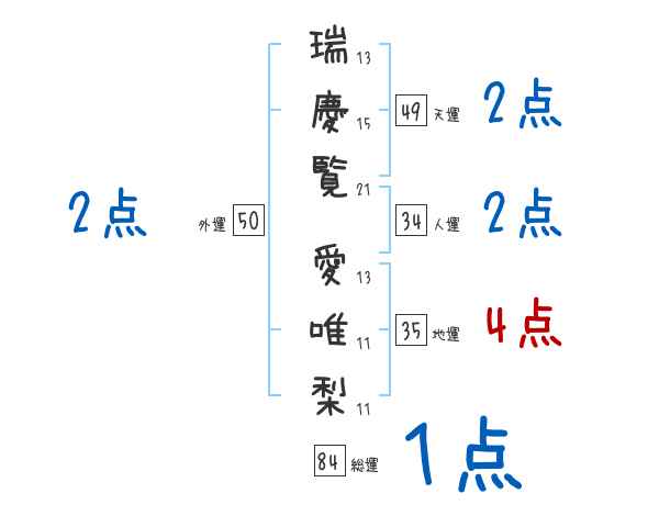 瑞慶覧愛唯梨さんの画数の鑑定結果