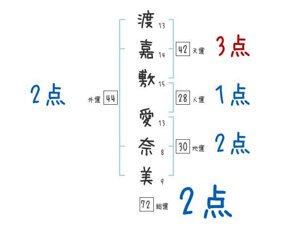 渡嘉敷愛奈美さんの画数の鑑定結果