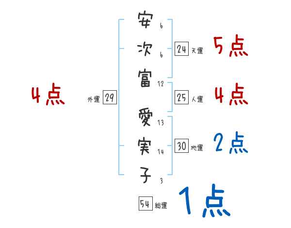安次富愛実子さんの画数の鑑定結果