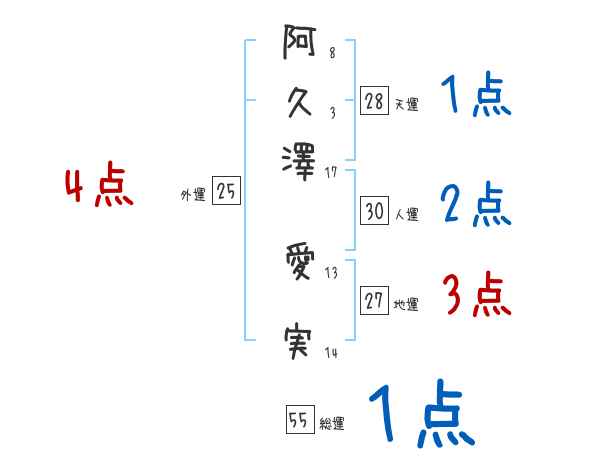 天運![]() | 阿久澤愛実さんの天運は28画の1つ星!家庭環境に注意。スポーツで活躍できる能力があるかも。 家系が持つ宿命的な運勢を表します。祖先から受け継いだ苗字ですので自分の力が及びません。家柄を象徴します。 |
