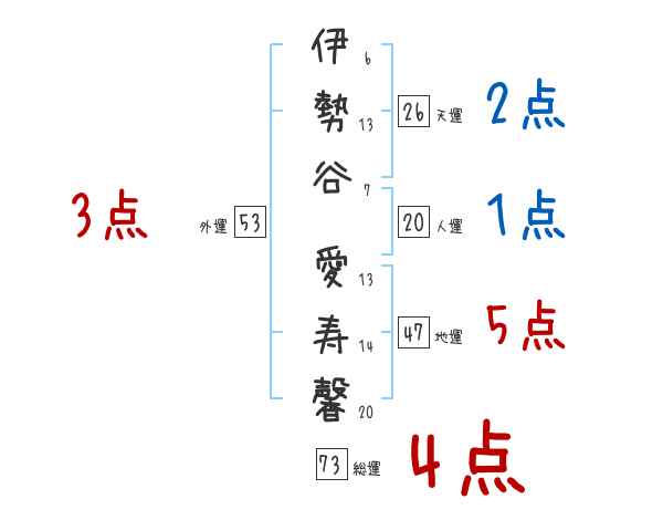 伊勢谷愛寿馨さんの画数の鑑定結果