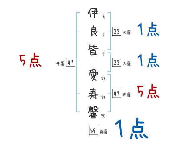 伊良皆愛寿馨さんの画数の鑑定結果