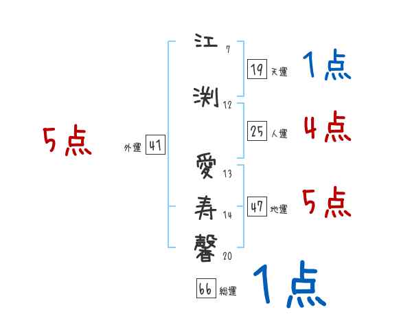 江渕愛寿馨さんの画数の鑑定結果