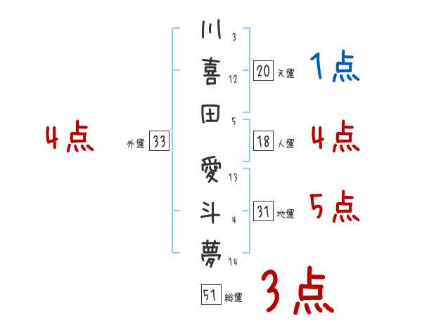 川喜田愛斗夢さんの画数の鑑定結果