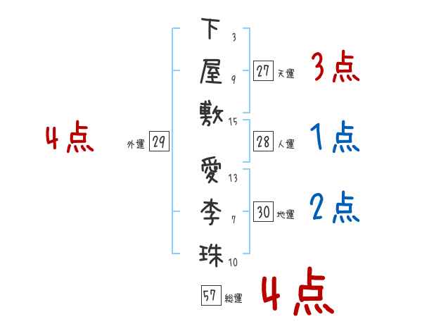 家系が持つ宿命的な運勢を表します。祖先から受け継いだ苗字ですので自分の力が及びません。家柄を象徴します。