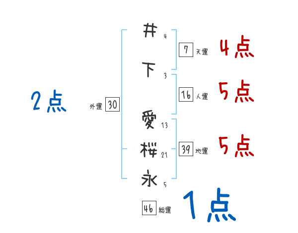 井下愛桜永さんの画数の鑑定結果