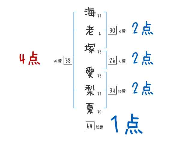 海老塚愛梨夏さんの画数の鑑定結果