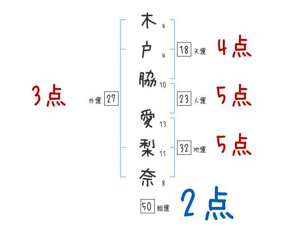 木戸脇愛梨奈さんの画数の鑑定結果