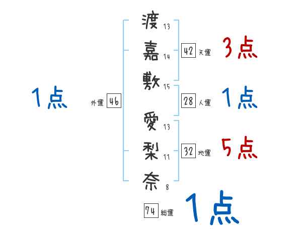 渡嘉敷愛梨奈さんの画数の鑑定結果