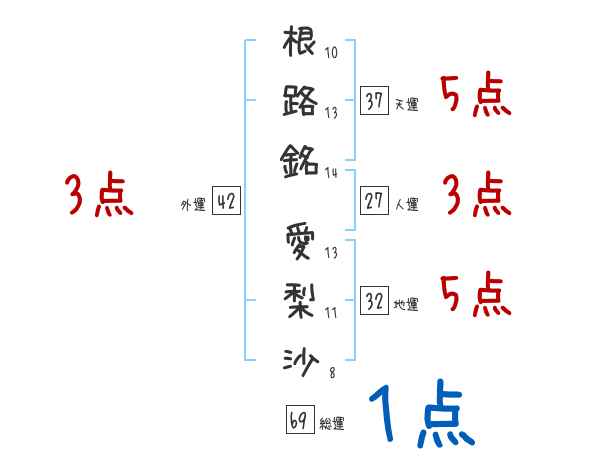 根路銘愛梨沙さんの画数の鑑定結果