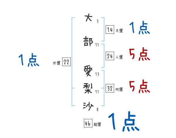 大部愛梨沙さんの画数の鑑定結果