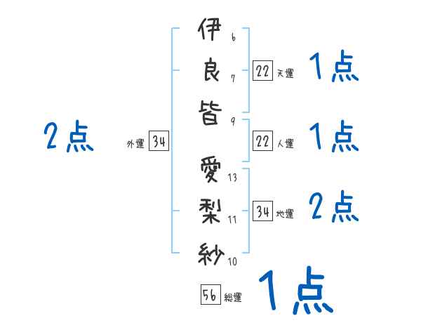伊良皆愛梨紗さんの画数の鑑定結果