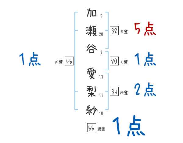 加瀬谷愛梨紗さんの画数の鑑定結果