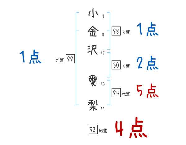 小金沢愛梨さんの画数の鑑定結果