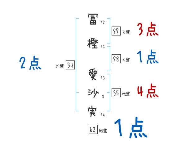 冨樫愛沙実さんの画数の鑑定結果