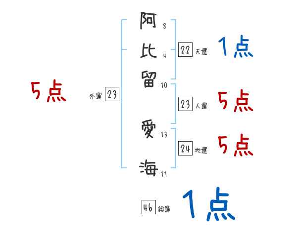 阿比留愛海さんの画数の鑑定結果