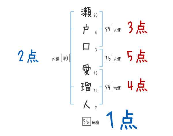 瀬戸口愛瑠人さんの画数の鑑定結果