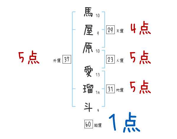 馬屋原愛瑠斗さんの画数の鑑定結果