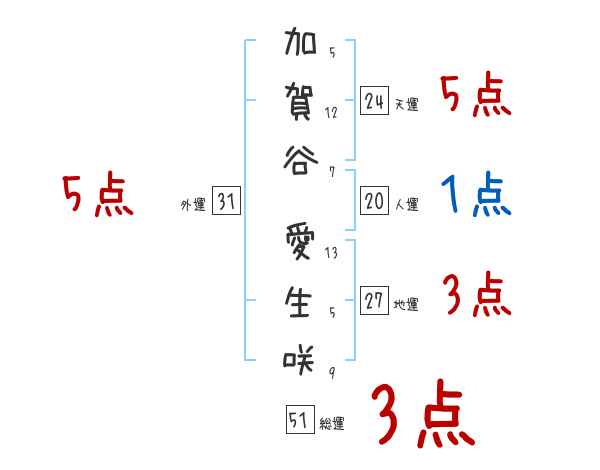 加賀谷愛生咲さんの画数の鑑定結果