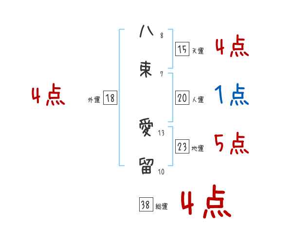 総運![]() | 八束愛留さんの総運は38画の4つ星!温厚な性格で技術的な才能を発揮する。職人的な仕事に向いている。 あなたの人生を表す1番重要な運勢です。生涯を通じて影響する総合運となり、主に50歳以降の晩年期に影響を及ぼします。 |