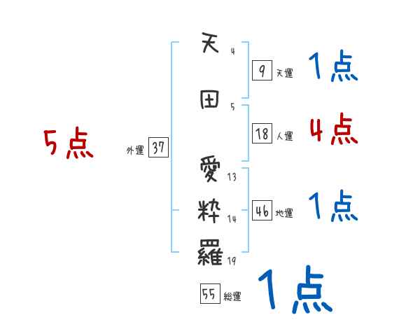 天田愛粋羅さんの総運は55画の1つ星