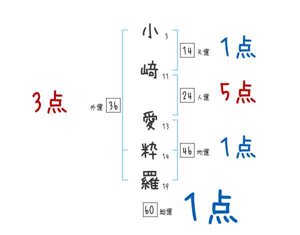 小﨑愛粋羅さんの画数の鑑定結果