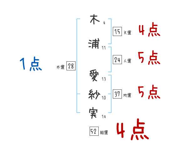 天運![]() | 木浦愛紗実さんの天運は15画の4つ星!人徳があり出世する。順調に物事を進め円満な人生。 家系が持つ宿命的な運勢を表します。祖先から受け継いだ苗字ですので自分の力が及びません。家柄を象徴します。 |